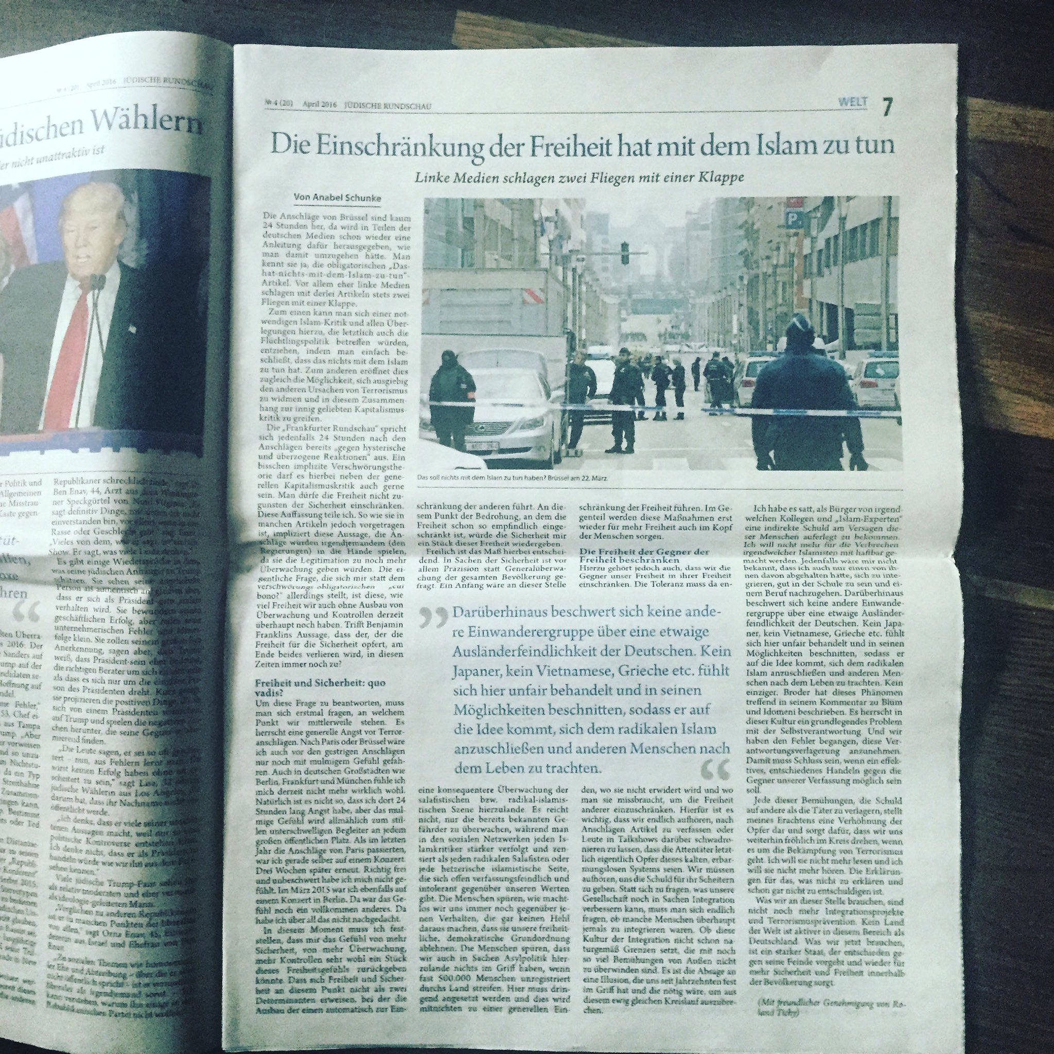 Mein erster Druck in der Zeitung und dann gleich eine ganze Seite. Thanks to Jüdische Rundschau. @TichysEinblick pic.twitter.com/TQiC6EsQiV